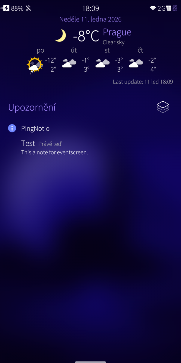 Simple app to send custom notifications yourself - quickly create a note that appears in the eventscreen as a notification (it isn't saved anywhere).